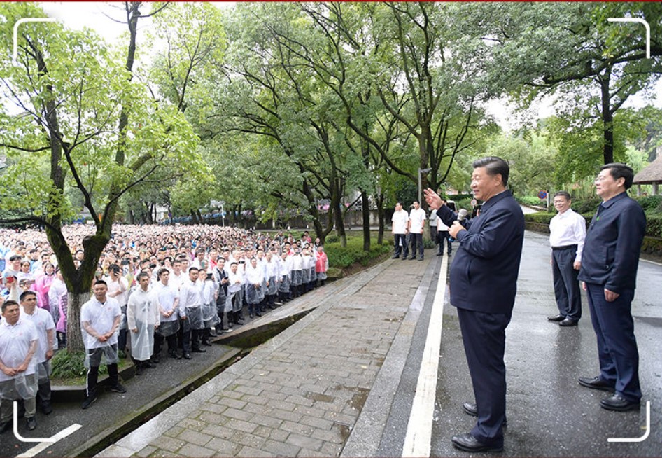 ↑2021年9月14日,习近平在陕西省榆林市绥德实验中学考察时,同师生亲切交流。