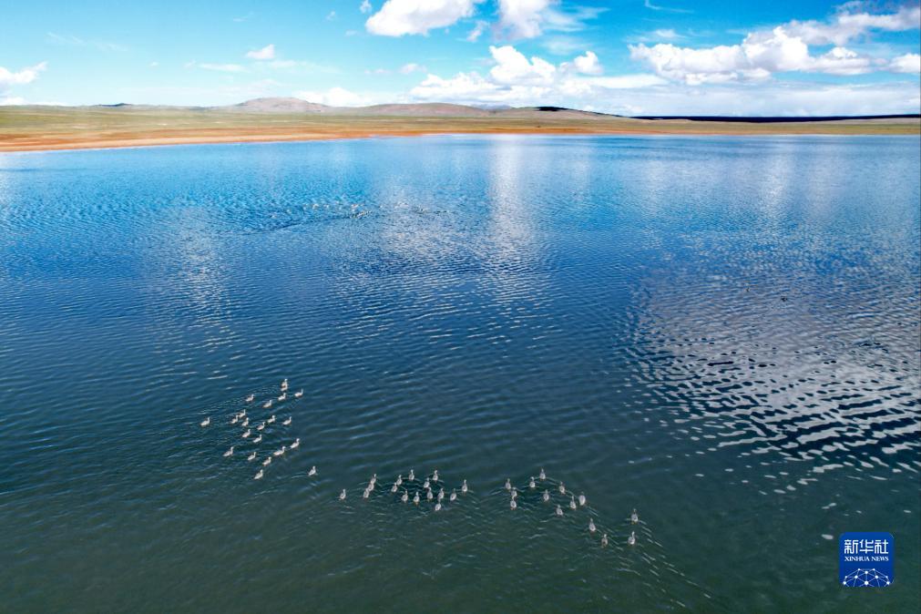 长江源区的水鸟群(7月26日摄,无人机照片)。 新华社记者 刘诗平 摄