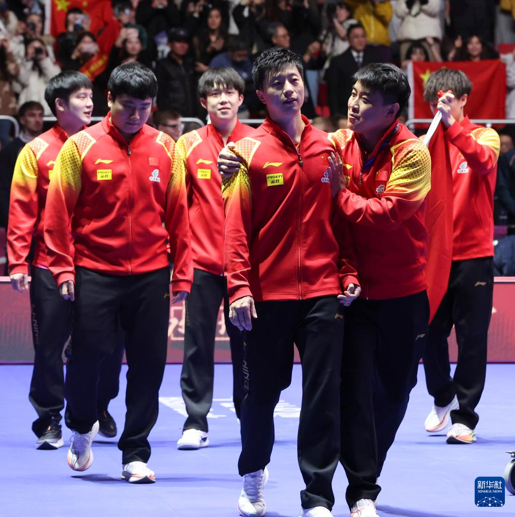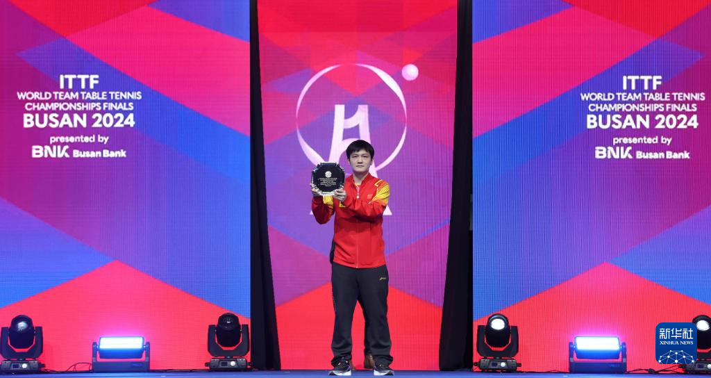 当日,在韩国釜山进行的2024年国际乒联釜山世界乒乓球团体锦标赛男子团体决赛中,中国队3比0战胜法国队,获得冠军。