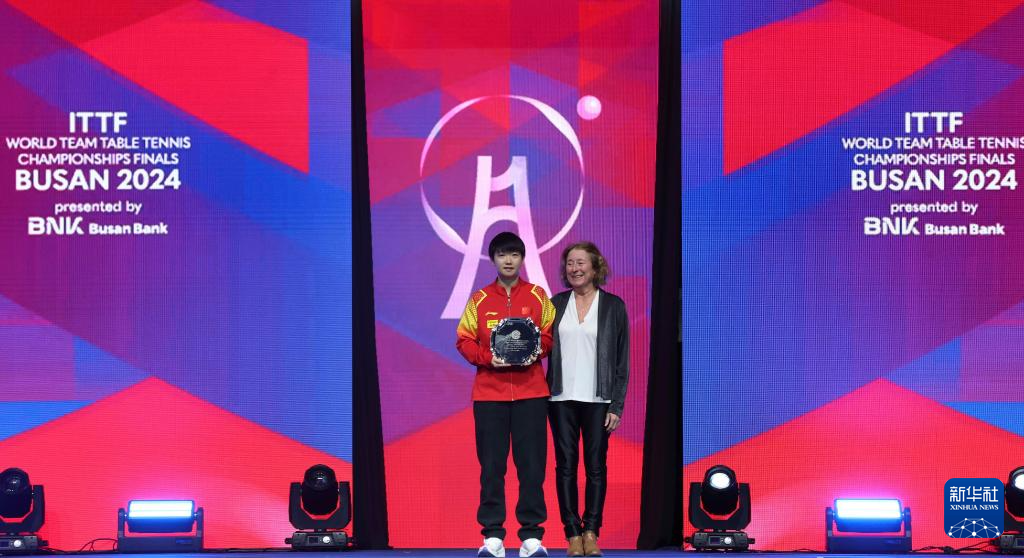 2月25日,孙颖莎(左)被评为本届世乒赛最佳女运动员。