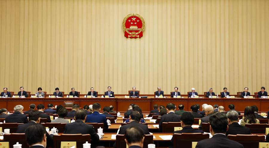 2月24日上午,十四届全国人大常委会第十四次会议在北京人民大会堂举行第一次全体会议。赵乐际委员长主持。新华社记者 黄敬文 摄