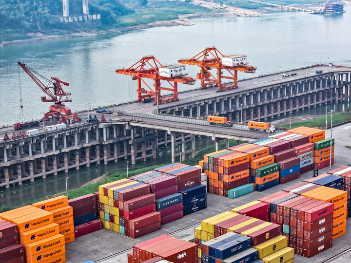 这是2025年2月25日拍摄的重庆两江新区果园港(无人机照片)。新华社记者 唐奕 摄