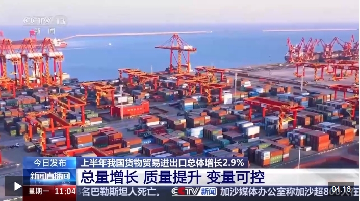 我国上半年货物贸易进出口总量增长 质量提升 变量可控