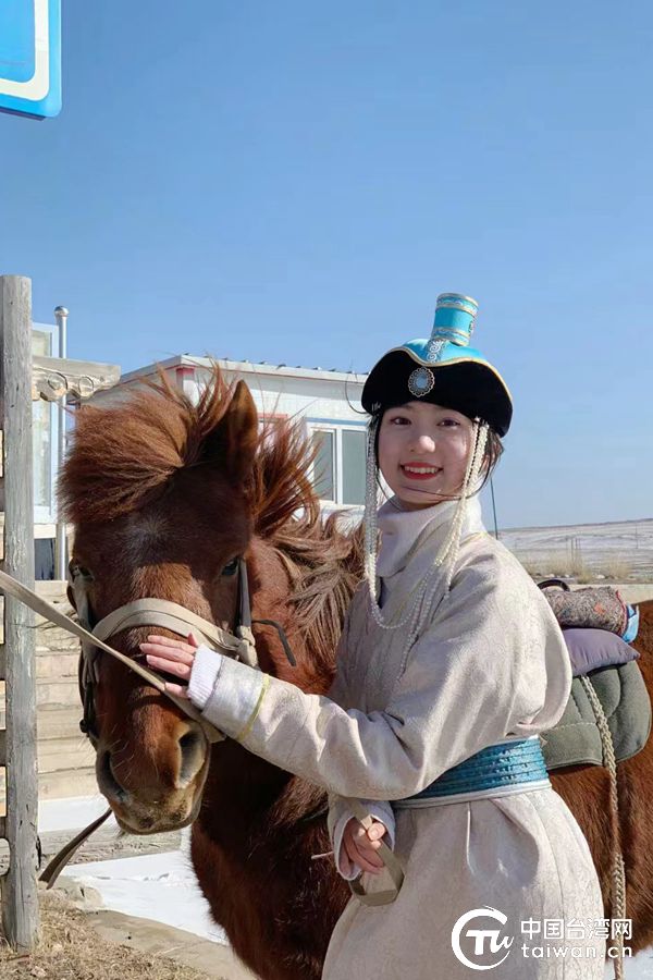 王陈怡娴于内蒙古希拉穆仁草原。(王陈怡娴供图,中国台湾网 发)