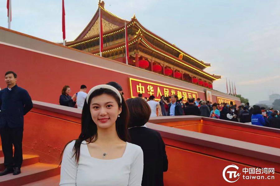 王陈怡娴在天安门观礼升国旗。(王陈怡娴供图,中国台湾网 发)