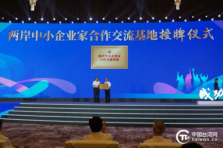 两岸中小企业家合作交流基地授牌仪式。(中国台湾网 张玲 摄)
