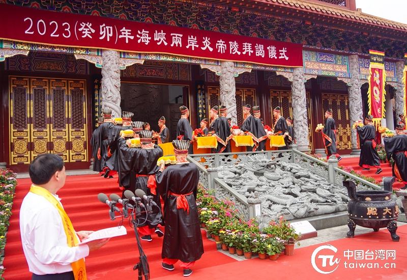 2023(癸卯)年海峡两岸炎帝陵拜谒仪式现场。(中国台湾网 发)