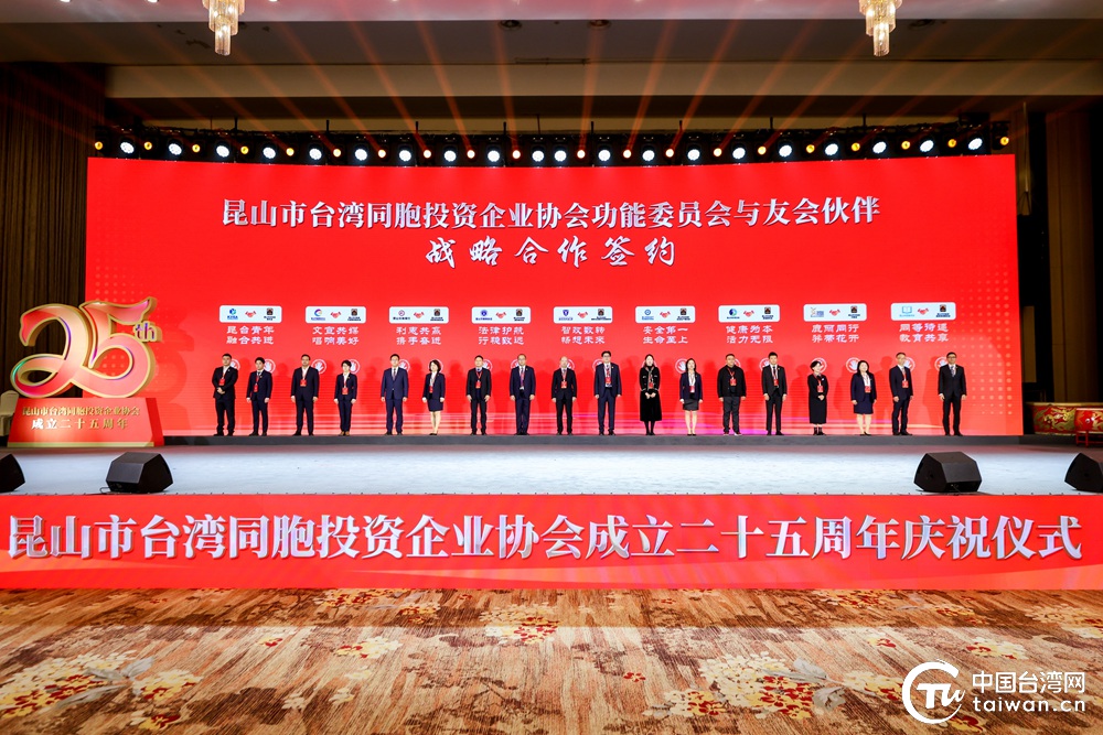 11月23日,昆山市台湾同胞投资企业协会(简称“昆山市台协会”)成立二十五周年暨第十五届会员大会成功举办。国台办经济局局长张世宏,江苏省台办副主任孙继兵,中国国民党副主席连胜文,全国台企联会长李政宏,苏州市委常委、昆山市委书记周伟,及来自海峡两岸的台商台胞、各地台协会代表等嘉宾出席活动。
