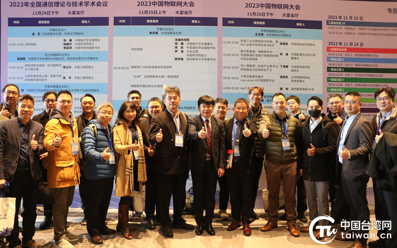 台湾代表团一行于2023中国物联网大会场馆前合影。(中国台湾网 郁诚 摄)