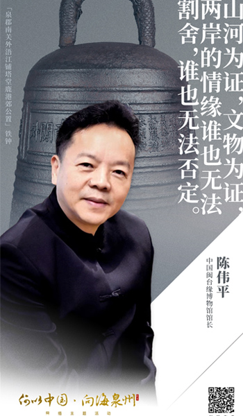 1月28日晚,由中央网信办、国家文物局、人民日报社、福建省委网信委指导,中央网信办网络传播局、国家文物局相关司局、福建省委网信办、福建省文物局以及人民网等部门联合主办的“何以中国·向海泉州”网络主题活动在泉州举行。活动现场,作为讲述嘉宾之一,中国闽台缘博物馆馆长陈伟平分享了自己见证的闽台缘、两岸情。
