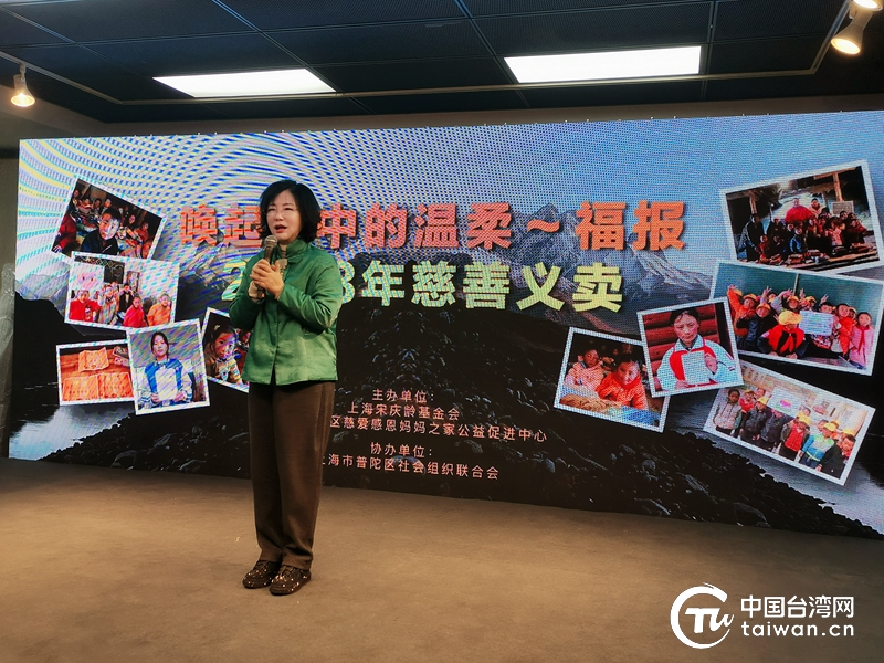 郭襄颍在2023年上海宋庆龄基金会慈爱感恩妈妈之家专项基金慈善义卖现场。(中国台湾网 发)