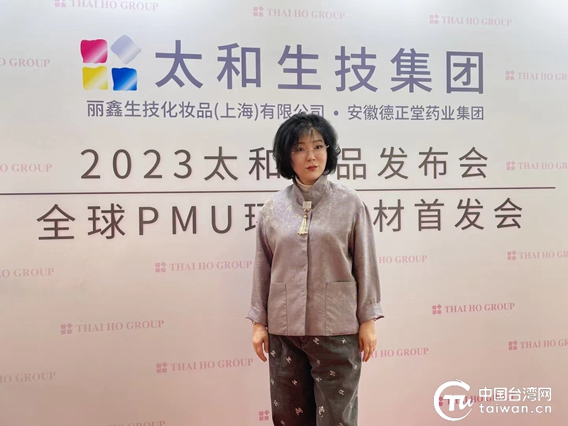 郭襄颍在太和集团2023全球PMU环保化妆品包材首发会现场。(中国台湾网 发)