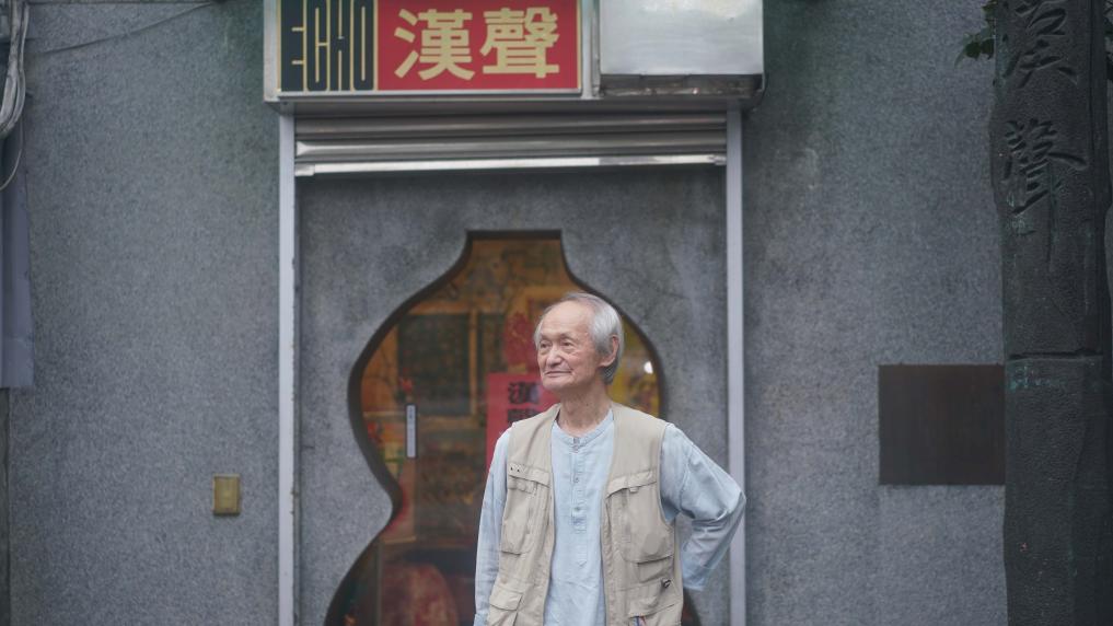 黄永松站在汉声书店的门前(2023年3月29日摄)。新华社记者 黄扬 摄