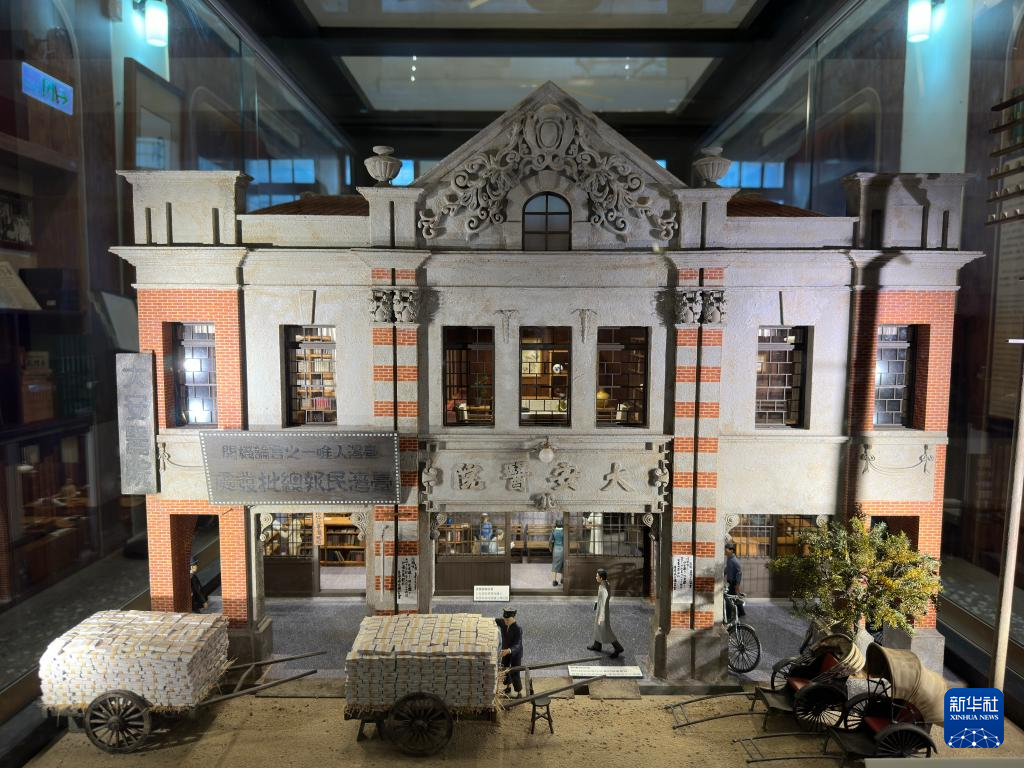 这是“渭水驿站”展出的大安医院还原模型,类似图书馆的办公场所是“台湾文化协会”总部和《台湾民报》编辑部(8月1日摄)。新华社记者 王承昊 摄