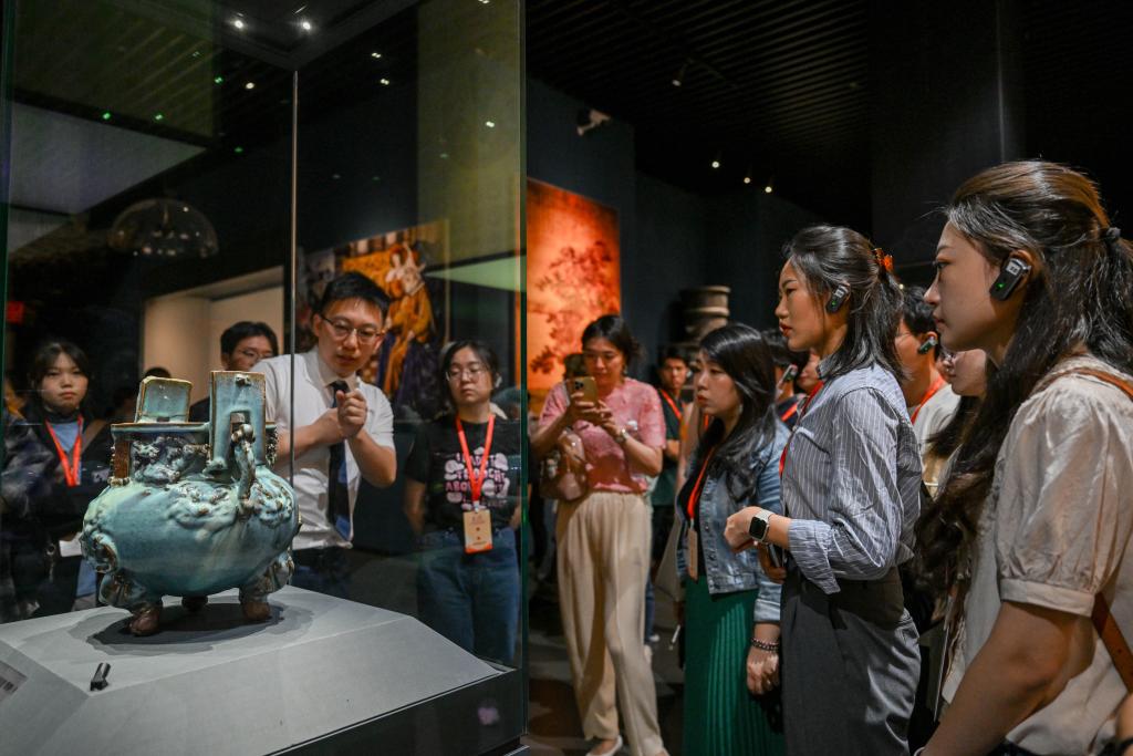 鹰顶金冠饰、辽代彩绘木棺、钧窑“小宋自造”香炉……内蒙古博物院馆藏文物记载着这片广袤土地上各民族交往交流交融的历史,前来参观的两岸学子看得认真,不时轻声交流。“伟大的中华文明是一个多样而包容的整体,中华民族共同的文化记忆是两岸年轻人应共同珍视的。”中国传媒大学学生陈中瑞感慨道。