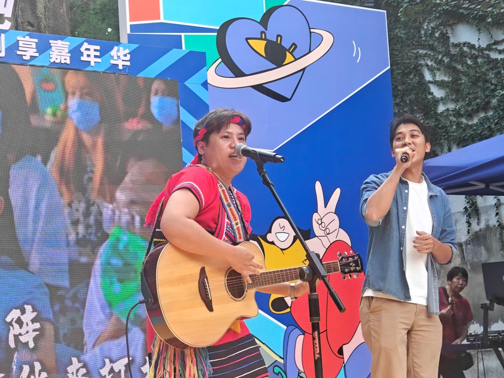 8月29日,在浙江乌镇举办的“青春同行”两岸新媒体创享嘉年华上,台湾青年赖淑珍(左)与吴炳璋(右)演唱原创歌曲《两岸青年》。新华社记者 于艾岑 摄