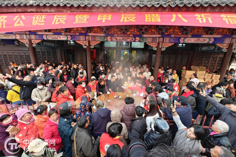 一碗浓情腊八粥,不仅承载着各地济公信众的虔诚信仰,也蕴含着人们对新年的美好祈愿。(中国台湾网、天台县台办联合报道)