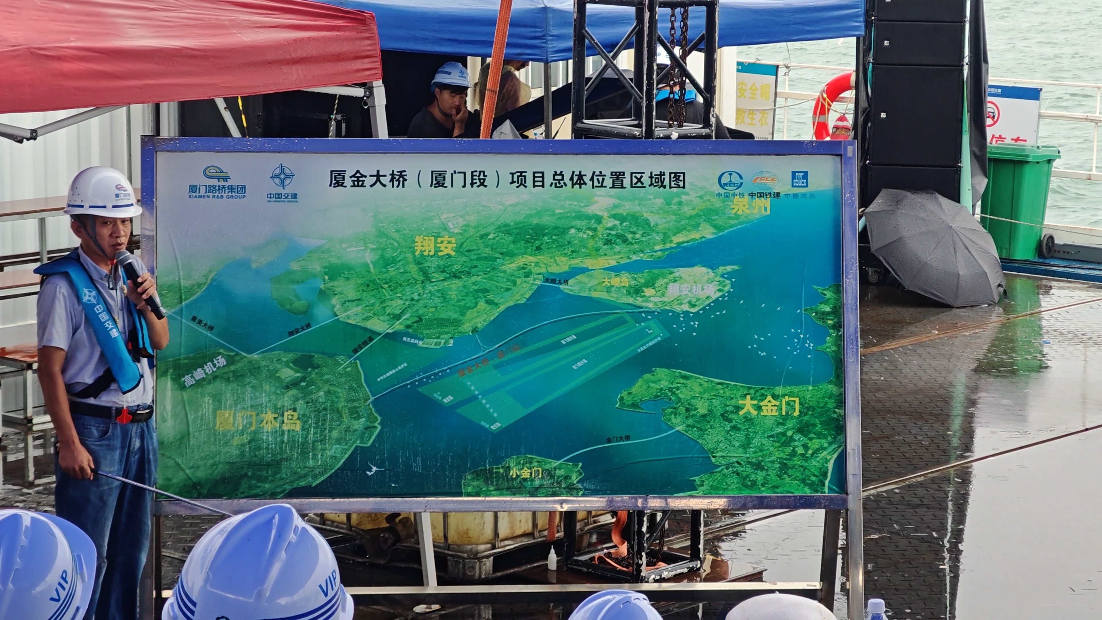 项目人员正在介绍厦金大桥(厦门段)总体情况