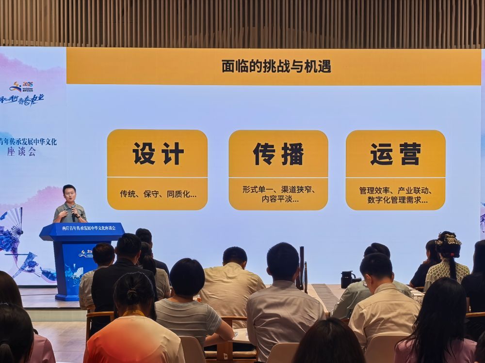 海峡之声广播电台7月18日苏州消息(记者 竹青、程娟娟)16日,第五届海峡两岸青年文化月期间,“两岸青年传承发展中华文化座谈会”在苏州博物馆举行。来自两岸的百余名青年学者、文化创业者、非遗传承人及艺术领域代表齐聚一堂,围绕“传统文化的新时代传承与创新”展开深度对话。