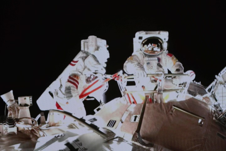 北京时间11月8日1时16分,神舟十三号航天员乘组圆满完成第一次出舱活动全部既定任务,王亚平成为中国首位进行出舱活动的女航天员,迈出了中国女性舱外太空行走第一步。这是中国载人航天事业的新高度,也是中国妇女事业的新成就。太空中的“她力量”再谱新篇,令人欣喜赞叹。