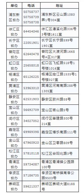 为了方便台胞了解相关信息,上海市台办还公布了台胞服务中心的咨询电话(021- 62625599),以及各区台办的联系方式。