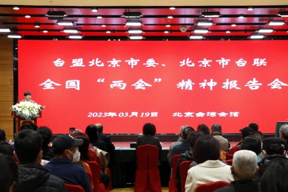海峡之声广播电台3月19日北京消息(记者 曹婷)为使广大盟员、在京台胞及时、全面、准确领会全国“两会”精神,19日,台盟北京市委、北京市台联在北京台湾会馆共同举办2023年全国“两会”精神报告会。台盟盟员、在京台胞以及台盟北京市委、北京市台联机关干部共200余人参加报告会。