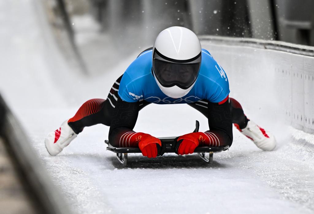 2月11日,中国选手闫文港获得男子钢架雪车铜牌。新华社记者贺长山摄