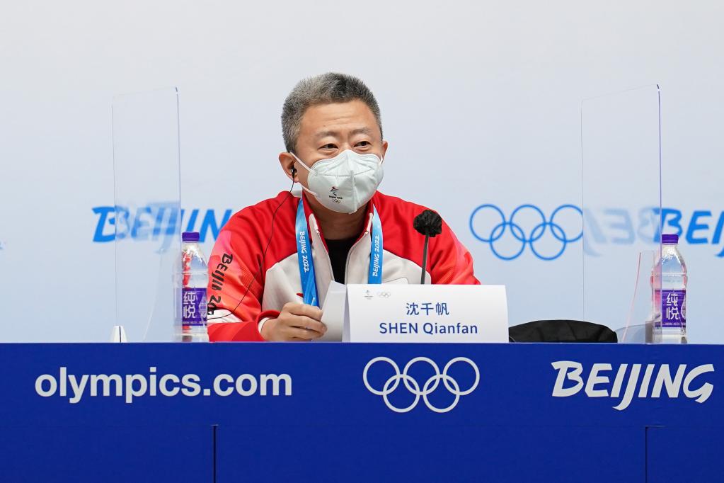 2月12日,北京冬奥组委奥运村部部长沈千帆在发布会上回答记者提问。当日,北京冬奥组委和国际奥委会每日例行发布会举行。新华社记者鞠焕宗摄