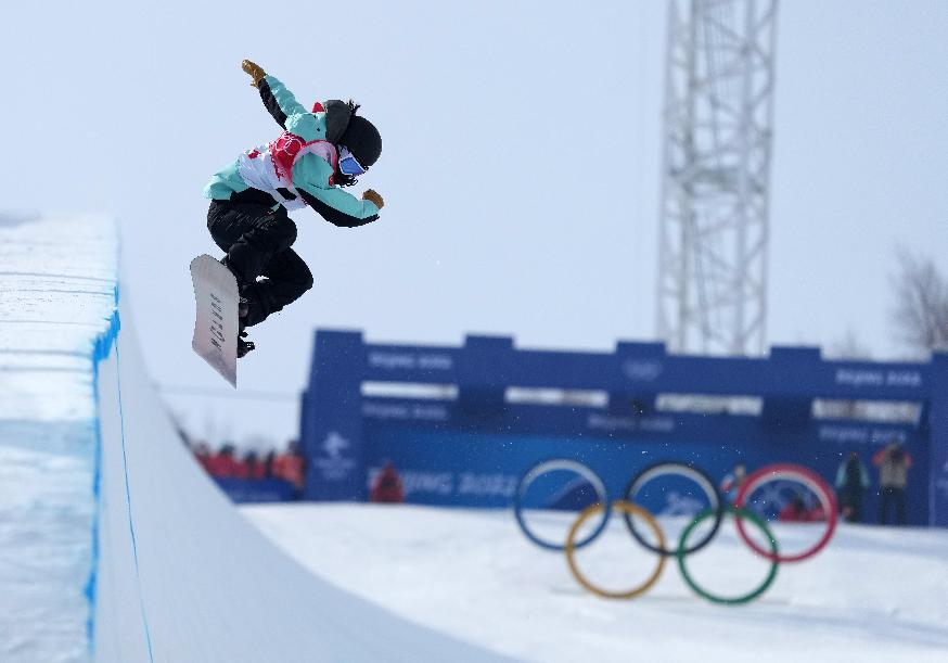 △ 2月10日,中国选手蔡雪桐在北京冬奥会单板滑雪女子U型场地技巧决赛中。