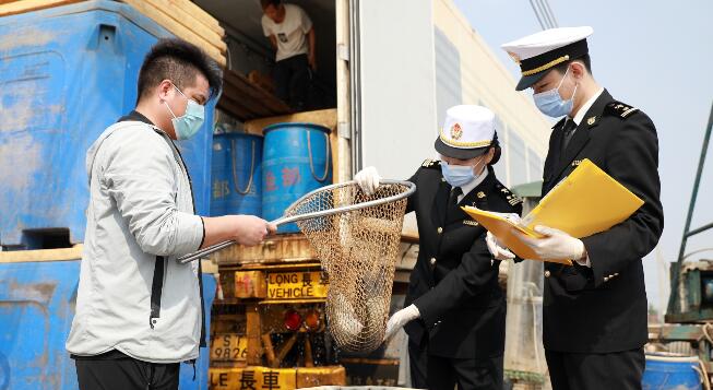 广东中山:海关关员对供澳活鱼开展装运监督