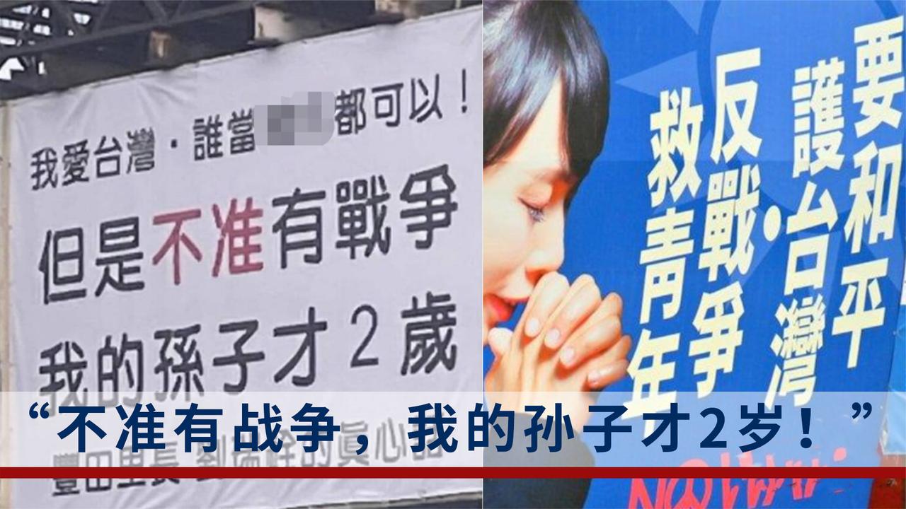 民进党当局利用手中的职权和资源,不顾民意,强制推行一些包藏私心的政策,把战争风险越推越高。然而广大台湾民众都是爱好和平、渴求过幸福安宁生活的,绝不愿意看到台湾卷入战争。近日,台中、彰化街头还出现反战广告牌,写着“不准有战争,我的孙子才2岁”。