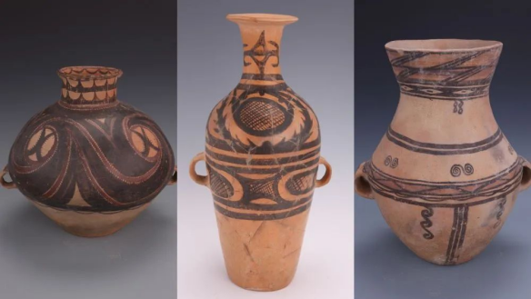 “这些彩陶最早可追溯至距今5000多年前,包括马家窑文化、齐家文化、辛店文化等,见证了中华文明多元一体格局形成发展的演进历程。”民族文化宫博物馆馆长陶颖介绍,其中,属于仰韶文化石岭下类型的变体鲵鱼纹陶瓶,记录了史前时期中原仰韶文化向西发展至甘青地区、衍化为马家窑文化的历史。