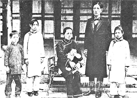 民国元年(1912年初),连横(连战的祖父)赴大陆前与全家合影。右起:次女春台、连横、夫人及三女秋汉、长女夏甸、子震东(连战的父亲)(资料图)