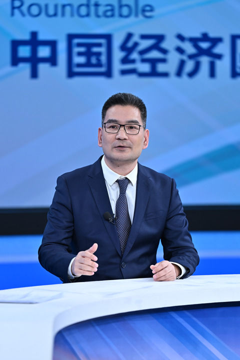 政府工作报告起草组成员、国务院研究室综合一司副司长黄良浩在第十四期“中国经济圆桌会”录制现场发言。新华社记者 李鑫 摄