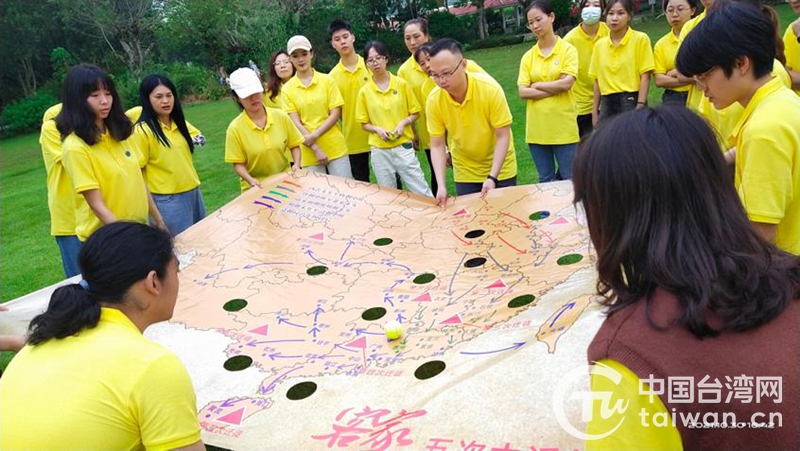 参加拓展活动之一“客家迁徙”(图片来源:梅州市台港澳事务局)