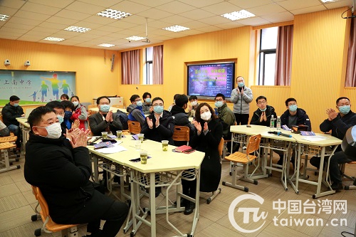 在热烈友好的气氛中,台北南湖高级中学董家莒校长、上南中学张海校长相继作了发言,大家一致认为,两岸同根同脉,学生对天文学有兴趣值得共同培育。在上海主会场、台北的分会场,大家用笑容、问候和手势传递着关爱和祝愿。