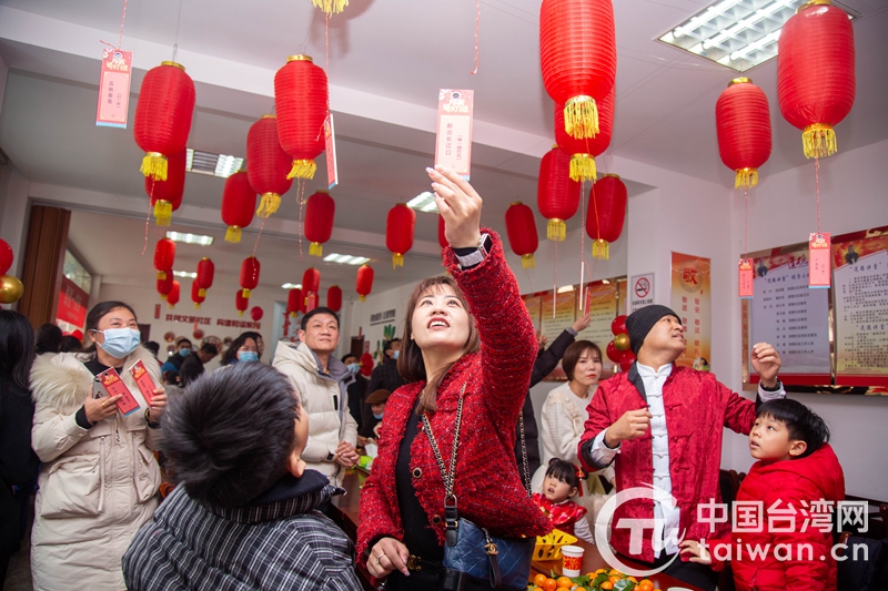 在猜灯谜环节,台胞台属全家总动员,你一条我一条,热烈讨论,欢声笑语不断。从字谜到成语,从元宵节到冬奥会,时下热门的话题都浓缩在短短的谜面中,自由竞答、现场抢答、争相兑奖,现场气氛十分火热。