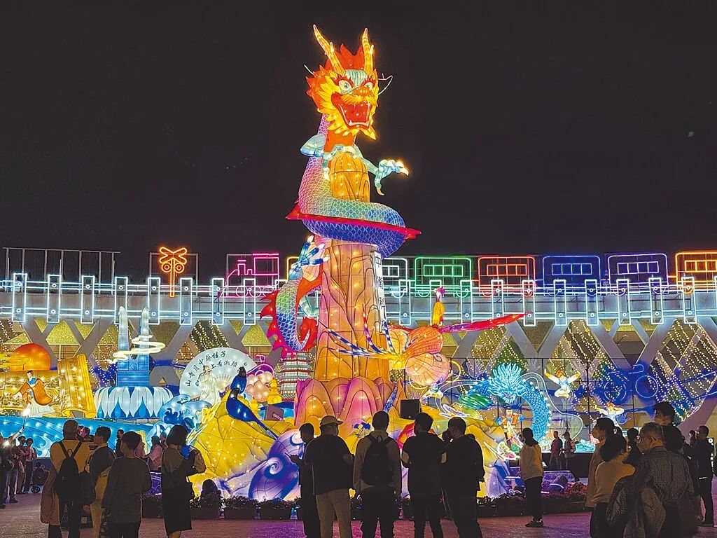 2月3日,南投县灯会在会展中心启灯开幕,主灯“福气龙来”高达13米,吸引众多市民驻足观赏。图自中时新闻网