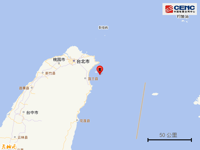 中国网2月26日讯 据中国地震台网微信公众号消息,据中国地震台网正式测定,2月25日21时48分在台湾宜兰县海域发生4.6级地震,震源深度10公里,震中位于北纬24.79度,东经122.02度,距台湾岛约19公里。