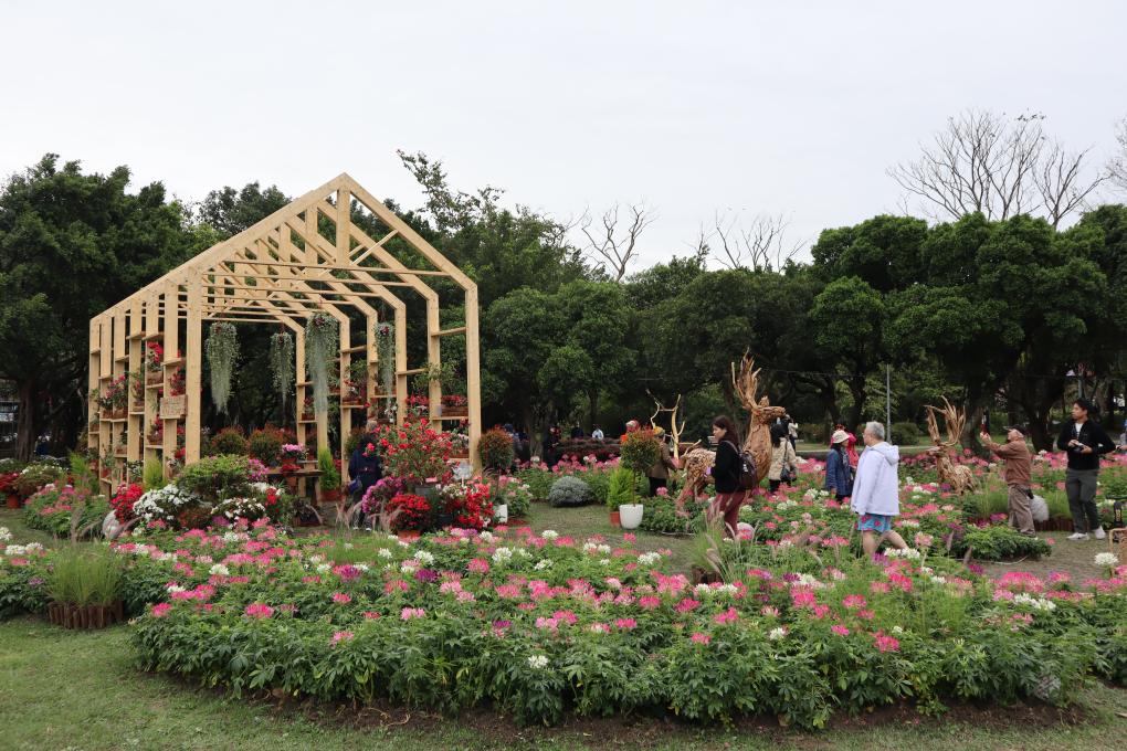 在“鹃流不息”展区,平户杜鹃、西洋杜鹃、皋月杜鹃等各式品种的杜鹃花被安放在镂空木构小屋的展览架上,错落有致。在和煦春风中,白的、红的、粉的杜鹃花轻轻摆动,尽显春日风采。