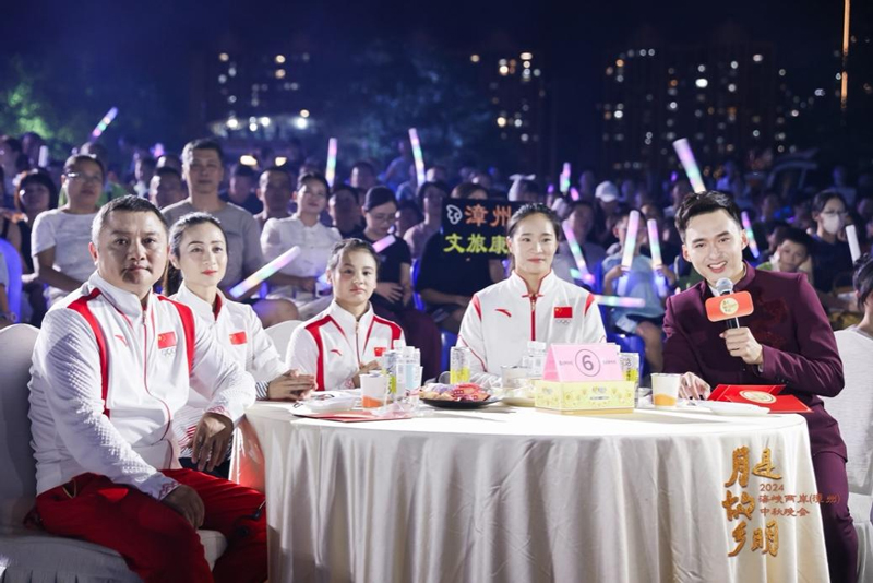 今年夏天,奥运会热浪卷全球,我们再一次为本国健儿的勇敢拼搏而激情澎湃。巴黎奥运会竞技体操女子高低杠项目的亚军邱祺缘,和她的启蒙教练魏如彬、国家队教练刘涛、以及东京奥运会帆板女子RSX冠军卢云秀,出席了本场晚会,向现场观众派送闽南特色月饼,收获掌声如潮。作为漳州文旅代言人的邱祺缘,还热忱推荐家乡的好山好水:“漳州有世界文化遗产南靖土楼,还有东山岛,蓝天白云、碧海金沙,简直就是‘人间仙境’!此外,即将推出的‘夜游九龙江’游玩项目,可一览漳州日新月异的发展。”