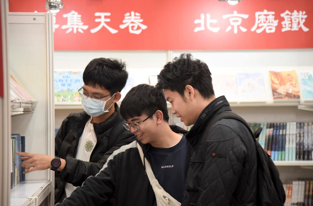 2月5日,读者在2025台北国际书展“简体馆”书架前挑选图书。新华社记者 刘斐 摄