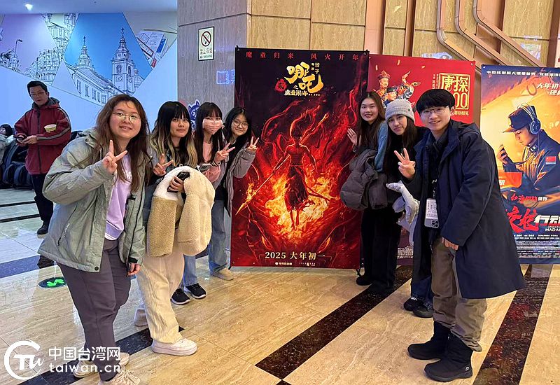 师生们一起走进影院观看《哪吒之魔童闹海》。(中国台湾网发)