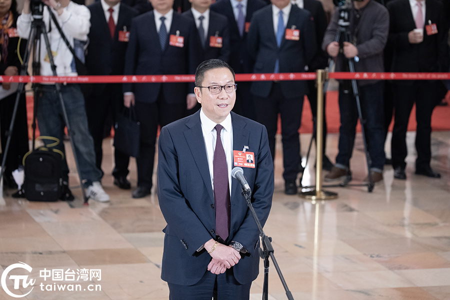 3月10日,全国政协十四届三次会议第三场“委员通道”在人民大会堂举行。这是全国政协委员、澳门街坊会联合总会副会长何润生接受媒体采访。(中国台湾网记者 陈佳慧 摄)