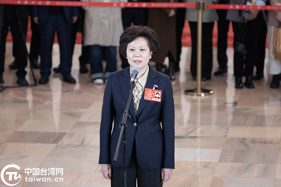 3月10日,全国政协十四届三次会议第三场“委员通道”在人民大会堂举行。这是全国政协委员、台盟浙江省委会主委陈清莉接受媒体采访。(中国台湾网记者 陈佳慧 摄)