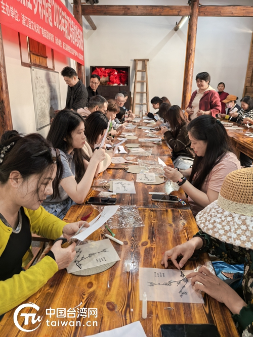 台湾青年在非遗传承人的指导下体验麦秆画制作(中国台湾网发)