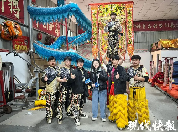 郑雅琪跟随杨超栋踏入了武陟县黄河龙狮非遗传承基地。在这里,她深入了解到了“黄河飞龙”与黄河的深厚渊源。这种独特的舞龙道具采用圆筒形设计,舞动时龙身翻腾,宛如黄河之水汹涌澎湃,生动地展现了黄河的磅礴气势。