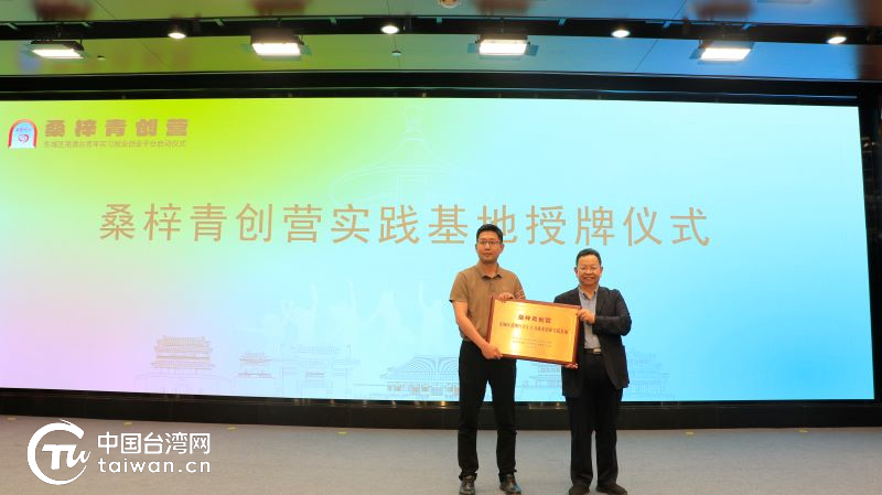 孙新军同志为桑梓青创营实践基地——东城文化人才(国际)产业园授牌。(中国台湾网记者 刘赛飞 摄)