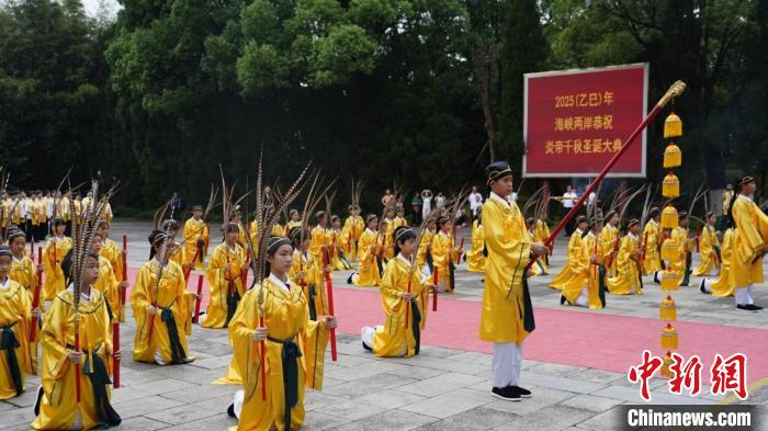 当天上午,炎帝陵一派祥和气氛。9时,参加乙巳年海峡两岸恭祝炎帝千秋圣诞大典的各界嘉宾,依次缓步进入祭祀广场。9时29分,典礼正式开始,全体肃立,击鼓九通、鸣金九响、鸣炮奏乐。