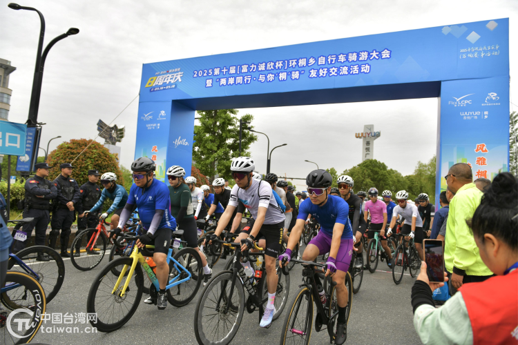 2025第十届“富力诚欣杯”环桐乡自行车骑游大会暨“两岸同行·与你‘桐’骑”友好交流活动。(中国台湾网发)